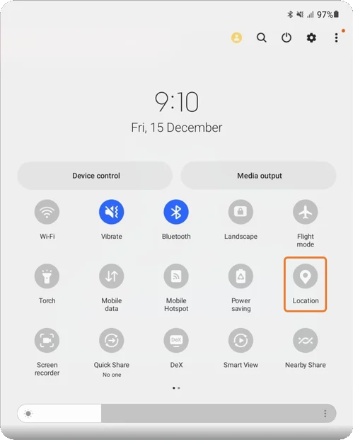 Alternatively, swipe down on the screen to open the Quick panel, then tap the Location icon to enable location services.