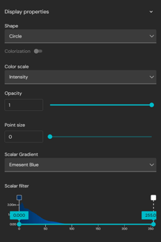 - Adjust the visibility of points in the scalar filter to display only highly reflective points. This makes GCP targets easier to locate.